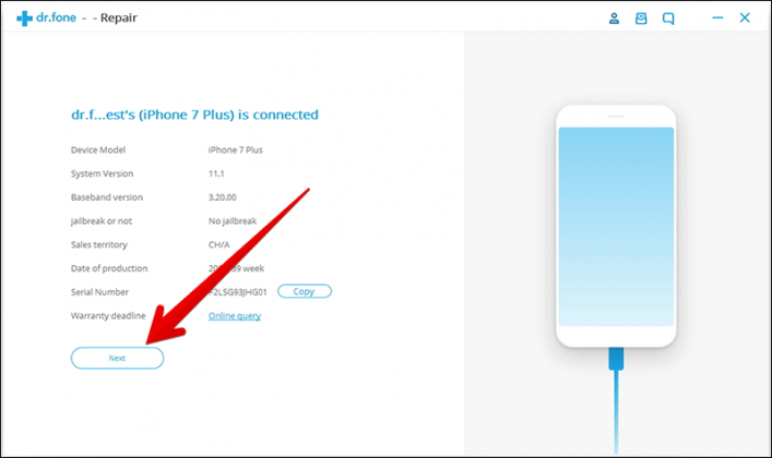 - Your phone’s details will come up; you’ll then choose “Next.”