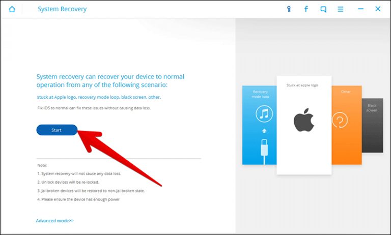 - Once you’ve connected your iPhone to your computer, choose “Start” from the screen prompt.