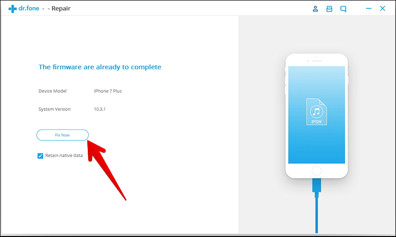 - When the download is complete, choose “Fix Now” to start the process of repairing your iPhone.