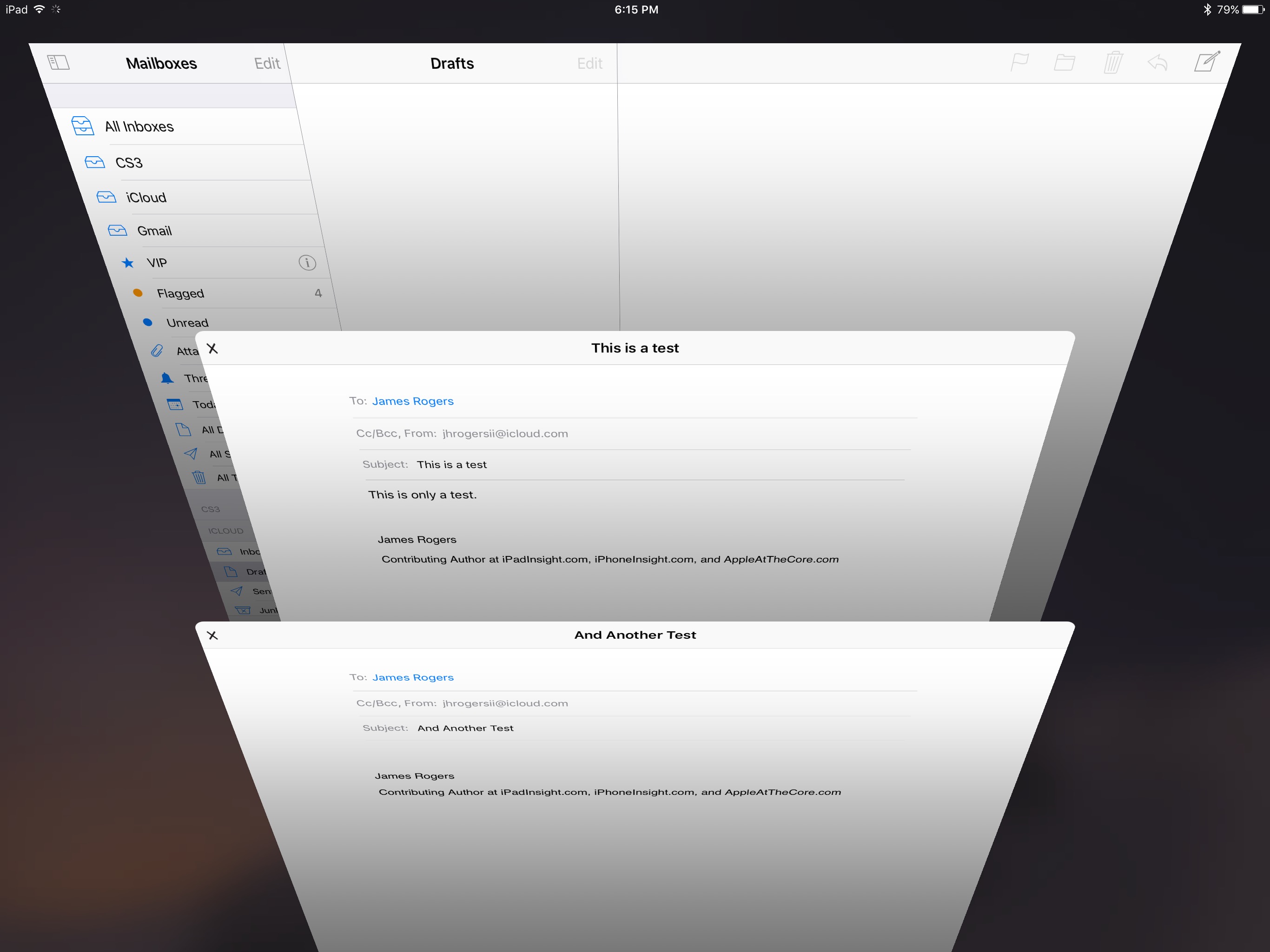 Mail on iOS gives users a feature that none of the other big email apps adopted. When you’re working on an email, you can swipe your draft down, moving it out of the way. We often need to look for something else from another email when composing our own, so this feature is very convenient for allowing you to look through your other emails, while still having your work in front of you too. You can actually have several things open, all at once, and be able to access all of them, back and forth, on virtually the same screen. Once you’ve used this feature for whatever your purpose is, it’s hard to live without it in your emailing world.